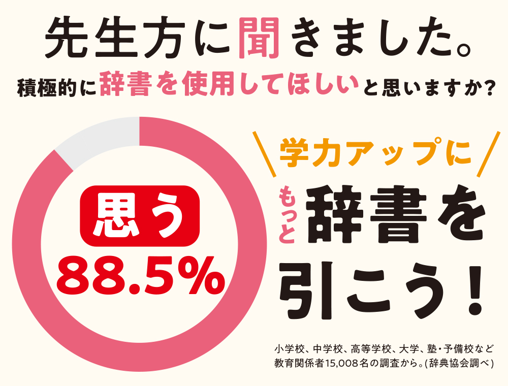 88.5%の先生方が、生徒・学生に積極的に辞書を使用してほしいと「思う」と回答(辞典協会調べ)